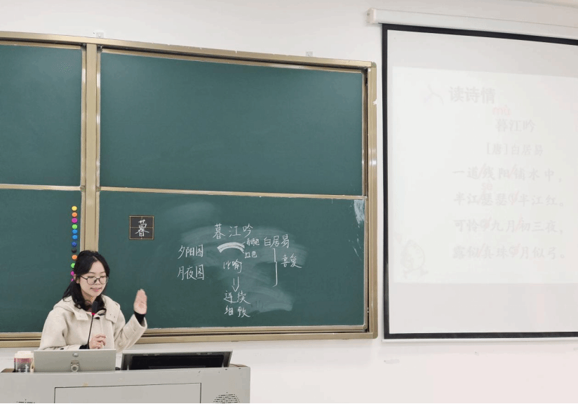24位参赛选手按照抽签顺序手依次上台,他们热情洋溢、激情澎湃地展现自己精彩纷呈的教学过程。他们的课堂衔接流畅自然,语调亲切,循循善诱。教学过程中展现出对现代多媒体技术与教学的高度融合,给我们带来了一场视觉与听觉双重震撼的盛宴。