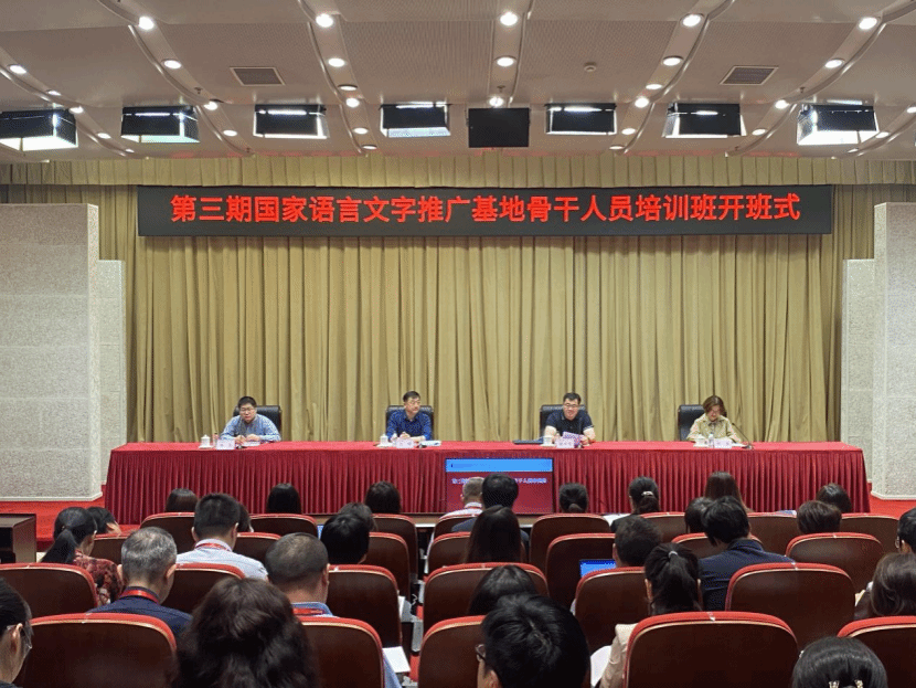 开班仪式上,教育部语言文字应用管理司副司长王晖作了题为《深入学习贯彻习近平总书记关于教育的重要论述和关于语言文字的重要指示批示精神 以语言文字事业高质量发展推进教育强国建设》的报告。他提到,要深刻理解习近平总书记关于语言文化的重要论述,深刻认识新时代语言文字发展事业面临的问题和任务,准确把握推广普通话工作在新时代的新使命。王晖强调,要深刻理解普及国家通用语言文字工作在全国教育工作中关键性、基础性的地位,认识到普及国家通用语文文字在铸牢中华民族共同体意识,传承中华传统优秀文化方面所发挥的重要作用,切实加大国家通用语言文字推广普及力度,统筹发展和安全,不断推动全国语言文字工作高质量发展,着力为铸牢中华民族共同体意识、构筑中华民族共有精神家园贡献力量。