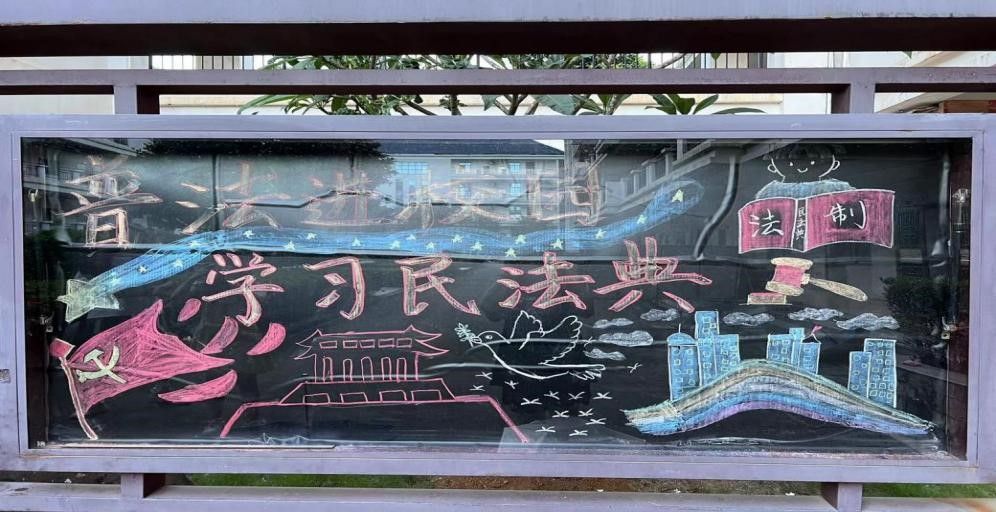 《中华人民共和国民法典》被称为“社会生活的百科全书”,是新中国第一部以法典命名的法律,在法律体系中居于基础性地位,也是市场经济的基本法。为深入学习宣传民法典,引导我院学生学法律、知荣辱、明是非,提升同学们学法、遵法、守法、护法的意识,引导大家依法维护合法权益。122cc太阳成集团不仅召开了民法典主题班会,还于2023年5月27日在文B107门口黑板上举办了黑板报创作活动。