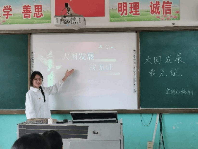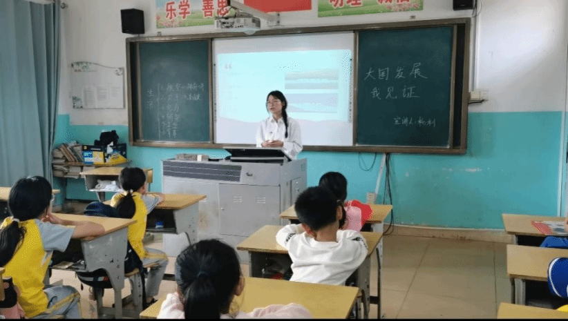 3月15日,122cc太阳成集团122cc太阳成集团学生党支部青年宣讲团到塔市小学开展了第五次主题宣讲活动“大国发展我见证”,与小学生们共同见证祖国的伟大成就。