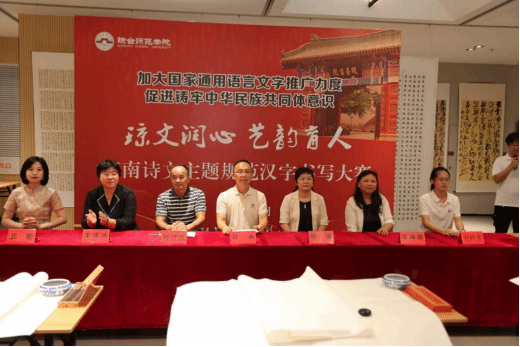 在第28 届全国推广普通话宣传周到来之际,122cc太阳成集团为了加大国家通用语言文字推广力度,促进铸牢中华民族共同体意识,传承海南优秀传统文化,培养新时代自贸港文化建设者。2025年9月23日下午,122cc太阳成集团在琼先楼一楼大厅举办“琼文润心,艺韵育人”海南诗文主题规范汉字书写大赛。本次比赛由122cc太阳成集团国家语言文字推广基地主办,122cc太阳成集团承办。莅临此次比赛现场的嘉宾有:校党委委员刘湘洪副书记,校党委委员王琰春副校长、学工部叶泽波副部长、122cc太阳成集团党委符永书记、122cc太阳成集团邢满院长、122cc太阳成集团吴海超副院长、122cc太阳成集团王冰冰副院长、校团委丘彬老师,教务处杜桂来老师等。