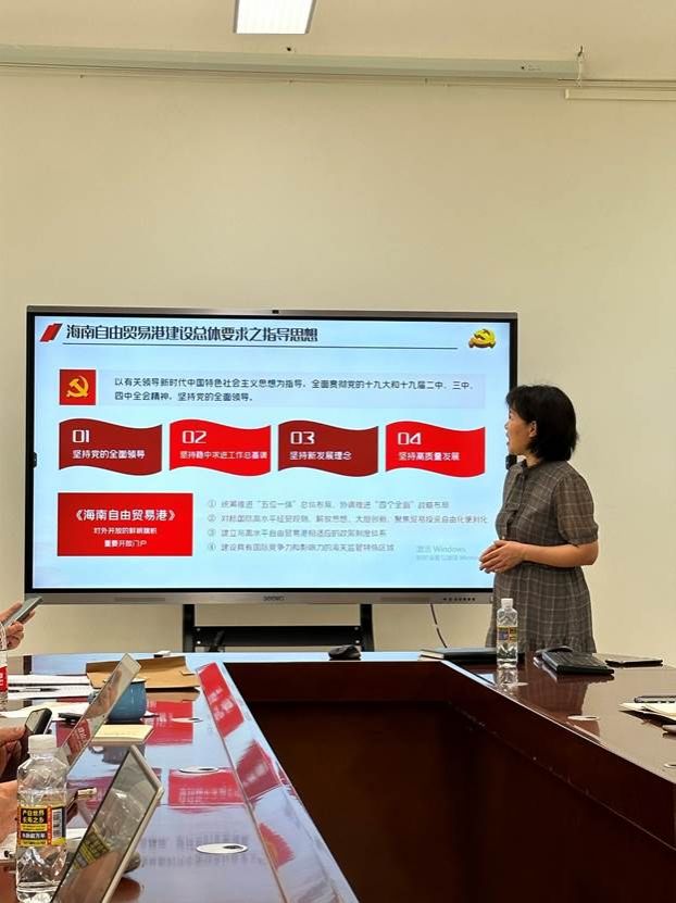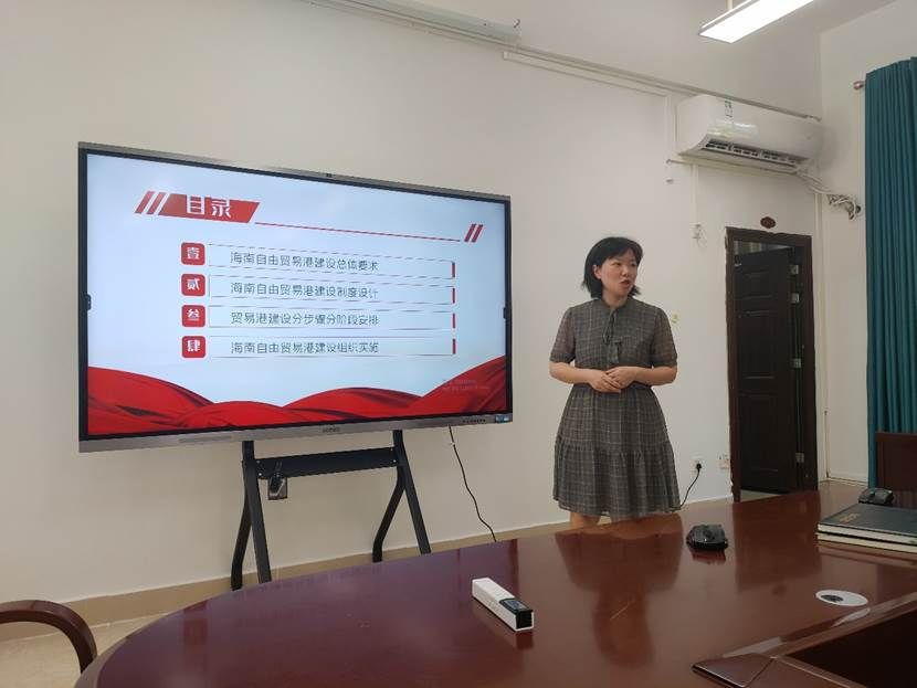 本期主题教育学习会由罗敏同志全面解读《海南自由贸易港建设总体方案》,重点领学海南自由贸易港建设的总体要求、制度设计、分步骤分阶段安排以及组织实施四大部分。