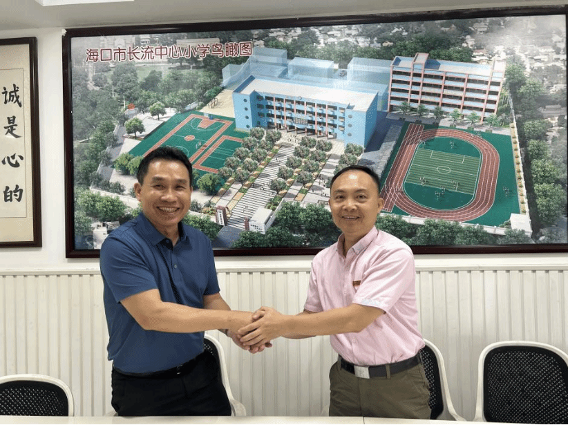 2024年4月28日,122cc太阳成集团党委书记符永、辅导员刘成功、韩紫薇走访海口市长流中心小学,与海口市长流中心小学校长吴忠博进行座谈,双方就进一步加强两校间合作事宜进行深入沟通,并为实践教学基地挂牌。