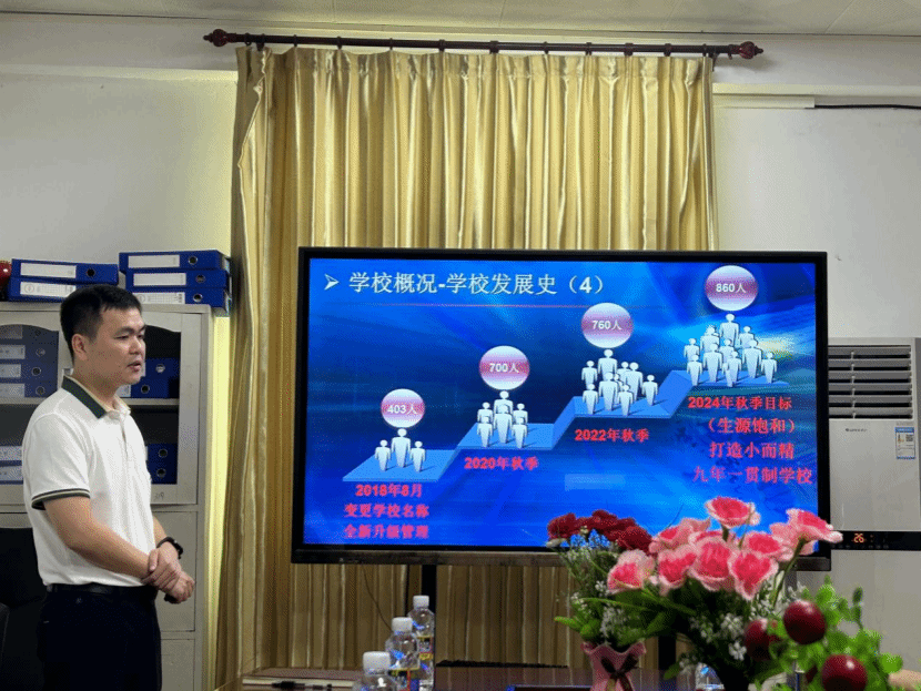 交流会上,海口景美实验学校王小郁校长对符永书记一行人的到来表示热烈欢迎,并简要介绍了学校的发展历程、集团概况、师资力量等。王小郁校长介绍了近年来集团岗位需求情况,表示十分重视与122cc太阳成集团的交流合作,愿意接纳更多琼台优秀学子来校实习、就业。符永书记就进一步拓展实习合作和就业育人等方面进行了探讨和交流,双方在创新人才培养等方面达成了初步合作意向。