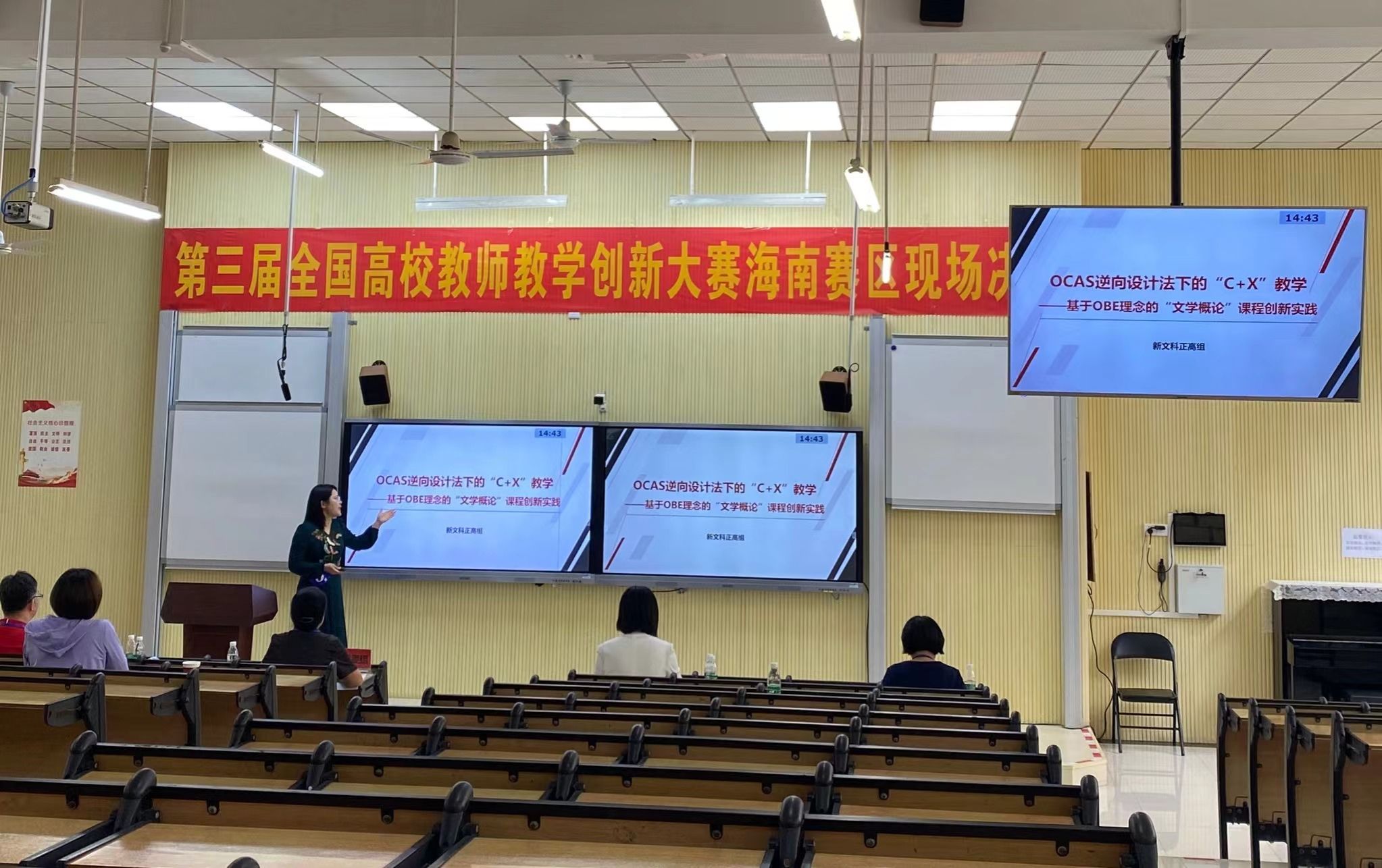 122cc太阳成集团在第三届全国高校教师教学创新大赛海南赛区决赛中喜获佳绩,此次获奖总数和获奖等级都实现新突破,罗敏老师的儿童文学课程获得基础课程组一等奖,并获得国赛参赛资格;曾艳宏老师的融媒体作品创作实训课程获得新文科组一等奖,陈小妹老师的文学概论课程获得新文科组二等奖。