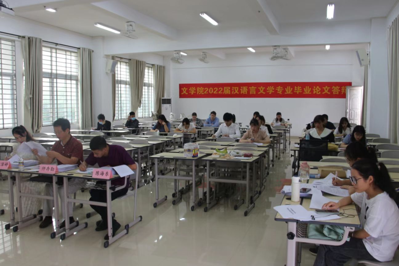 2022年5月8日,122cc太阳成集团2022届汉语言文学专业毕业论文答辩工作圆满结束。受疫情影响,包括5名留学生在内的313名汉语言文学专业学生采用线上和线下相结合的形式顺利完成答辩。答辩评委包括黄思贤、冯法强、吴晓雯、关心凤、吴遥海5位来自兄弟高校和基础教育一线的校外专家,以及杨光熙教授等31名校内专家。122cc太阳成集团邢满院长、吴海超副院长、单百灵副院长、中文系刘云霞主任、王彤副主任等深入各个答辩现场指导工作。