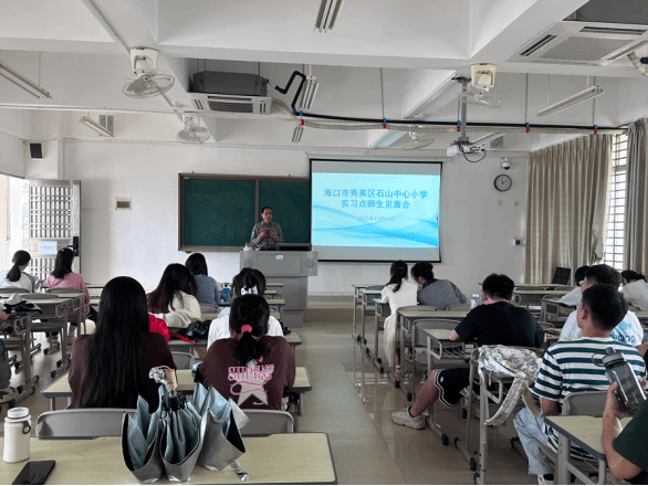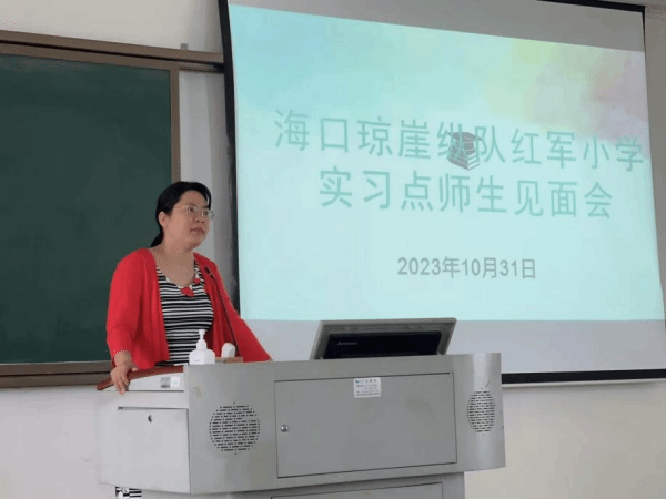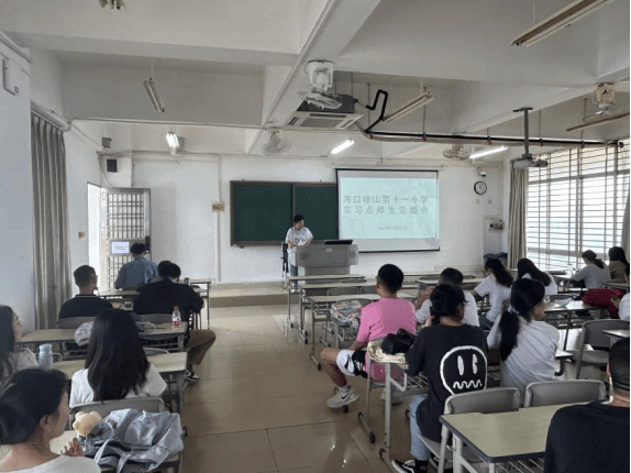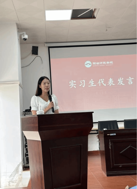 会议第四项,由2022汉语言文学7班韩晓宇同学代表全体实习生发言。她表示会遵守学校的相关规定,认真扎实地完成实习工作,争做“四有”好老师,用积极的心态去迎接实习生活,也希望可以在两个月的实习期内,为122cc太阳成集团、为琼台增添新的色彩。