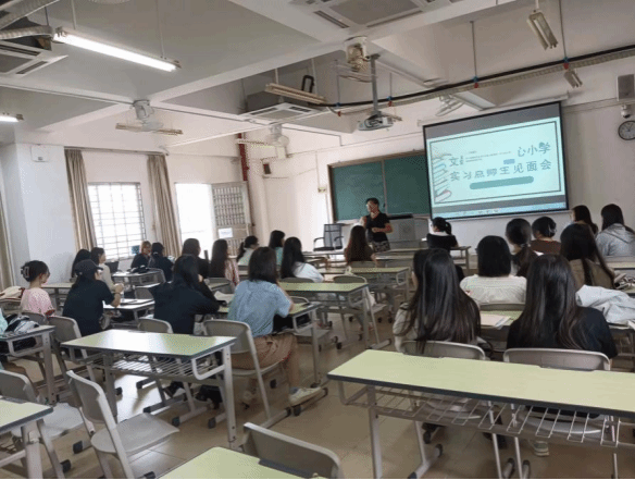 会议第二项,吴海超副院长发言。吴副院长结合自身经历,强调实习生要按照学校的实习要求,在带队老师的指导下完成对自身教学理论、教学技能、班级管理等相关能力和技能的培养,同时要做好实习与考研、考编、考公之间关系的协调。希望同学们可以调整好心态,增强自信心,提高就业意识,明确目标和计划并付出努力。