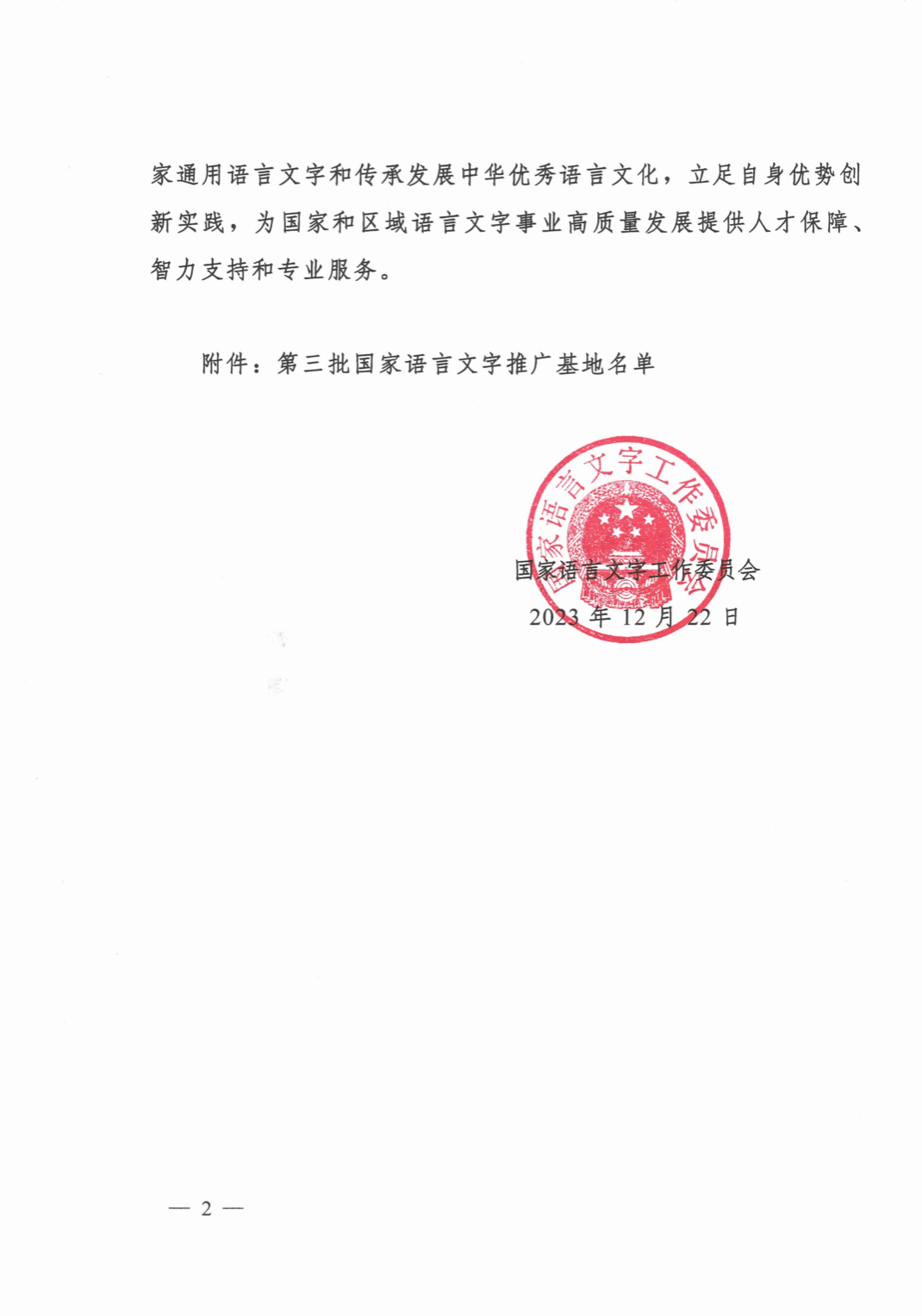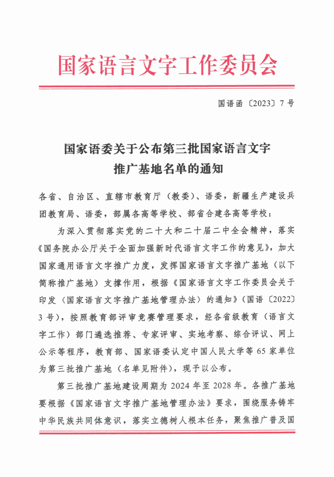 热烈祝贺我校获得国家语言文字推广基地称号 热烈祝贺我校第一个国家级基地挂靠122cc太阳成集团
