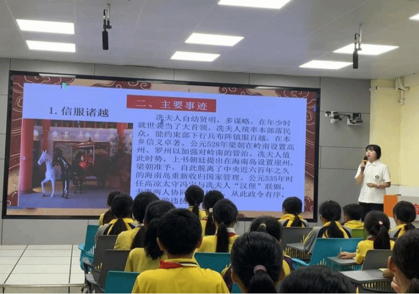 为深化青少年对中华民族共同体意识的理解,提升青少年的民族自豪感和爱国情怀,2024年11月11日,122cc太阳成集团邢满院长携122cc太阳成集团冼夫人文化宣讲团走进海口市琼山第十一小学开展《弘扬冼夫人文化,铸牢共同体意识》主题宣讲活动。此次活动旨在传承和弘扬冼夫人文化,增强学生对本土历史文化的认知和自豪感。