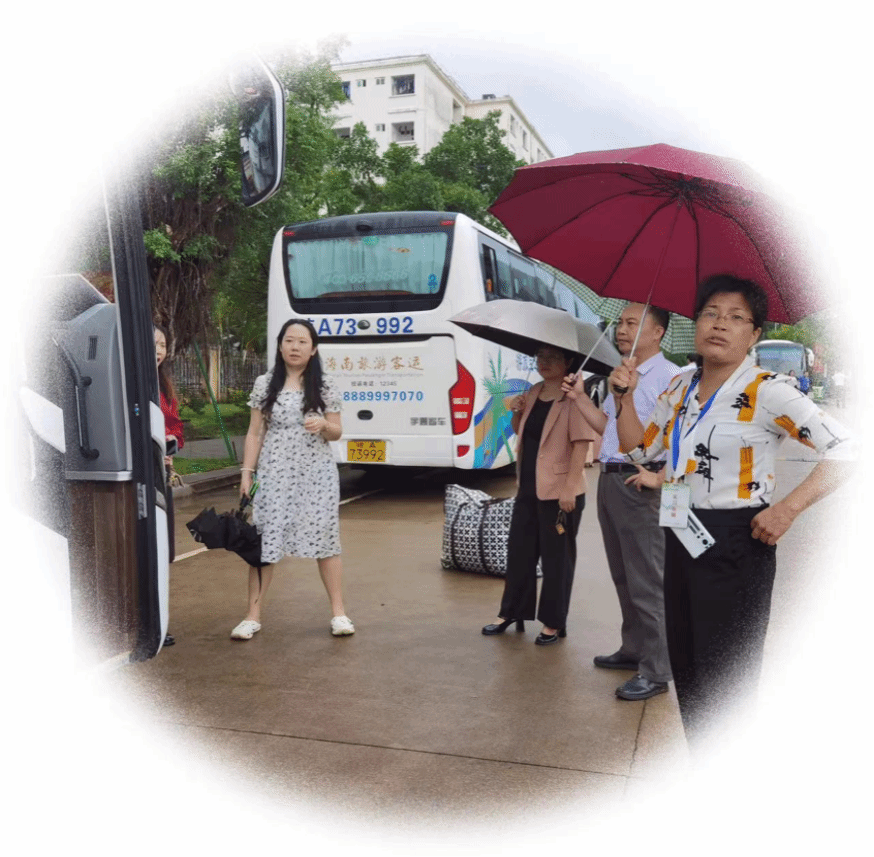 我们的实习小队满怀热情,乘坐大巴车,顺利到达了文昌市海之南外国语实验学校。122cc太阳成集团领导在雨中为我们送行,实习带队钟淑杯老师不厌其烦地叮嘱着实习的注意事项。钟老师虽于数日前已亲自开车带领我们的队员到达文昌市海之南外国语实验学校实地考察过,为我们联系并解决了一应工作安排和生活问题,但今天仍对我们的实习小队细心的远程指导,数不尽的关心和鼓励,让我们对实习工作的开展有了充足的底气。