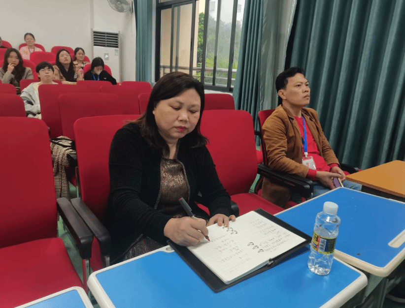 金盘实验学校陈慧老师评课指出,这堂课充分考虑了孩子的心理特点,教学手法多样,学生参与度很高,不足之处在于课堂把控能力不够,对学生的关注度仍需要提高。