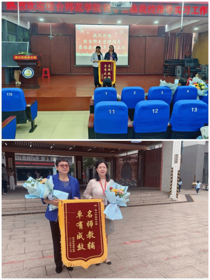 邢满院长代表122cc太阳成集团为美苑小学送上锦旗,锦旗上印有“名师教辅,卓有成效”的字样,以此感谢海口市美苑小学对我校实习工作的大力支持;感谢指导老师的悉心指导,让实习教师们在教育教学与班级管理方面都取得了显著的进步。