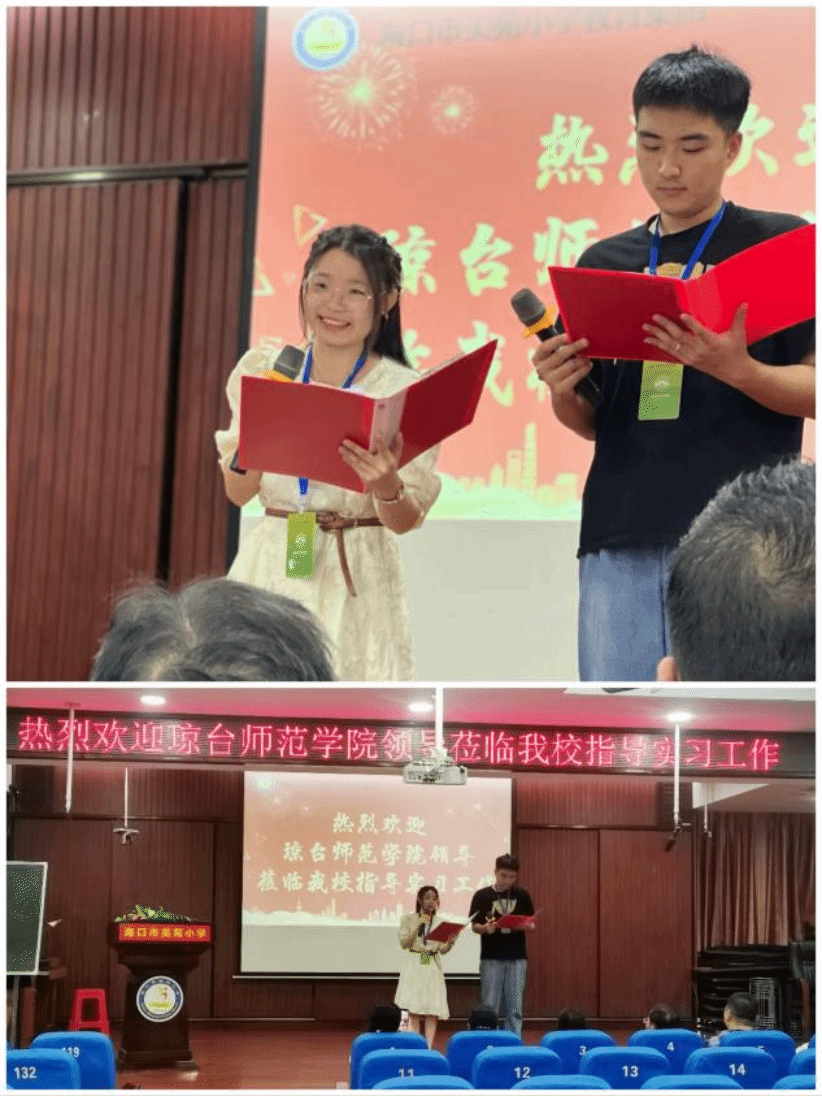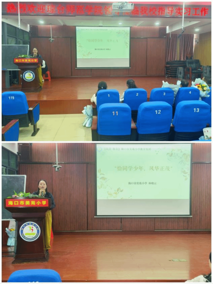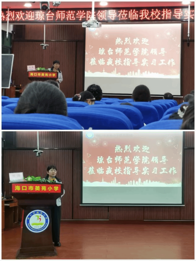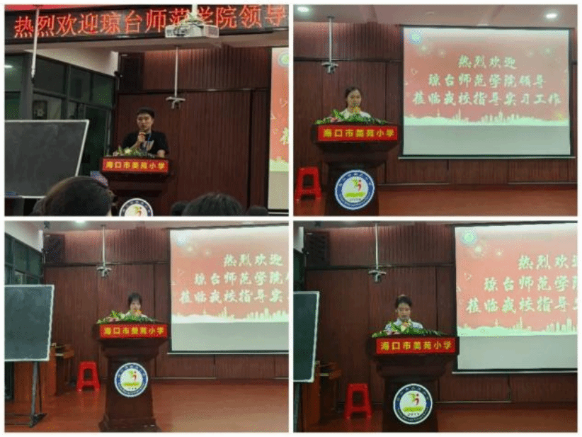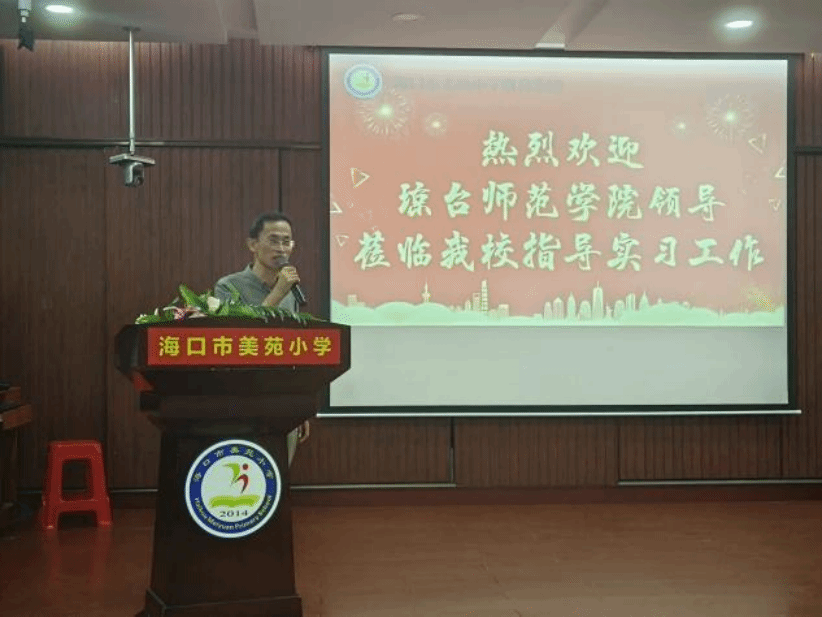 美苑小学指导教师代表胡兰滨副校长在随后的发言中表示,他自己作为一名琼台毕业生,现在仍然十分向往丰富多彩的校园生活,他鼓励实习生们要好好珍惜自己的大学时光,要在学校努力学习专业知识,不断提升个人素质和水平,再通过实习锻炼将理论知识化为实践能力,为将来成为一名合格的人民教师不断奋斗。
