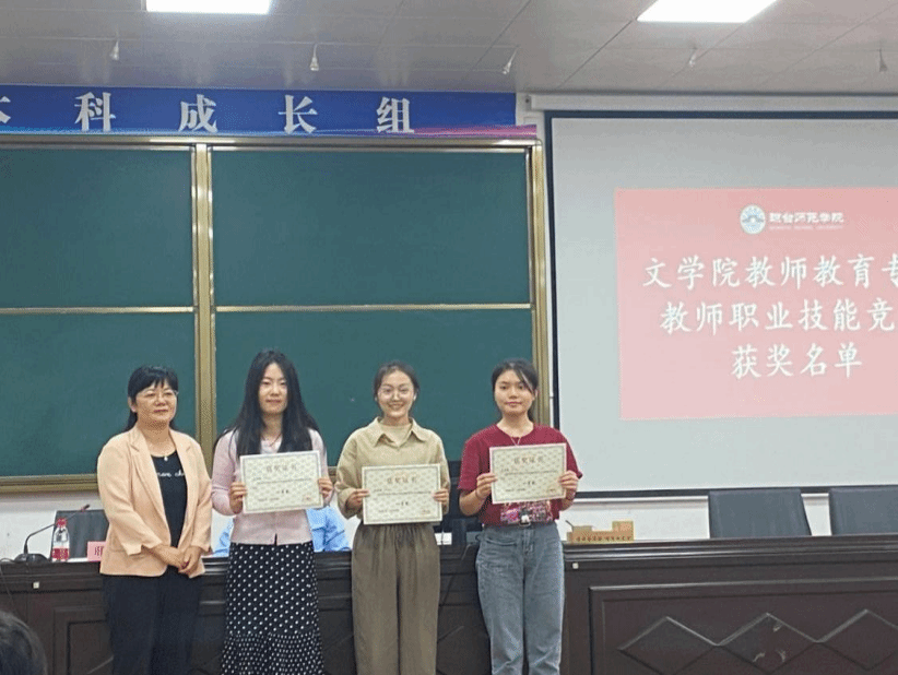 会议第二项内容,由邢满院长宣读122cc太阳成集团教师教育专业教师职业技能竞赛获奖名单以及优秀实习生名单。并由符永书记、邢满院长、吴海超副院长为122cc太阳成集团教师教育专业教师职业技能竞赛获奖学生以及优秀实习生颁发奖状。