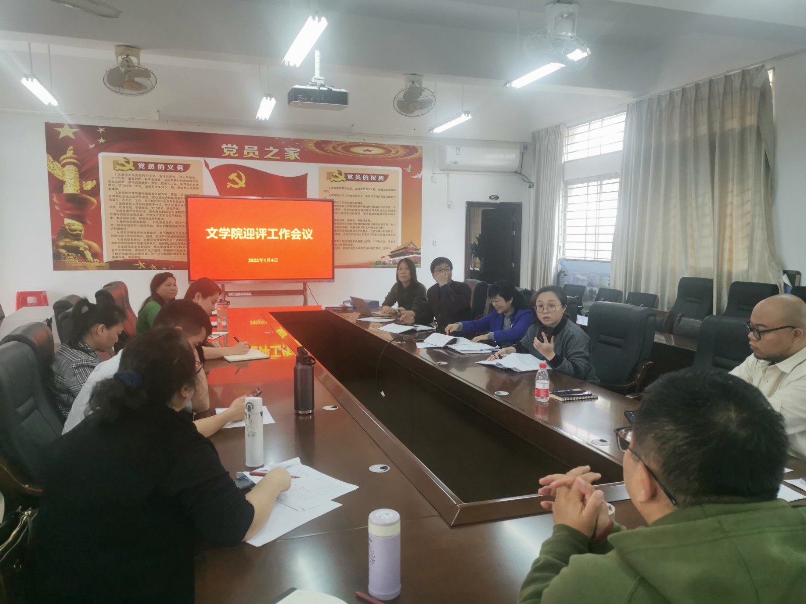 2022年1月4日下午,122cc太阳成集团在文B103召开本科教学工作合格评估迎评工作会议,学院领导、系主任、教务行政办公室以及学工办的全体工作人员参加了会议,会议由邢满院长主持。